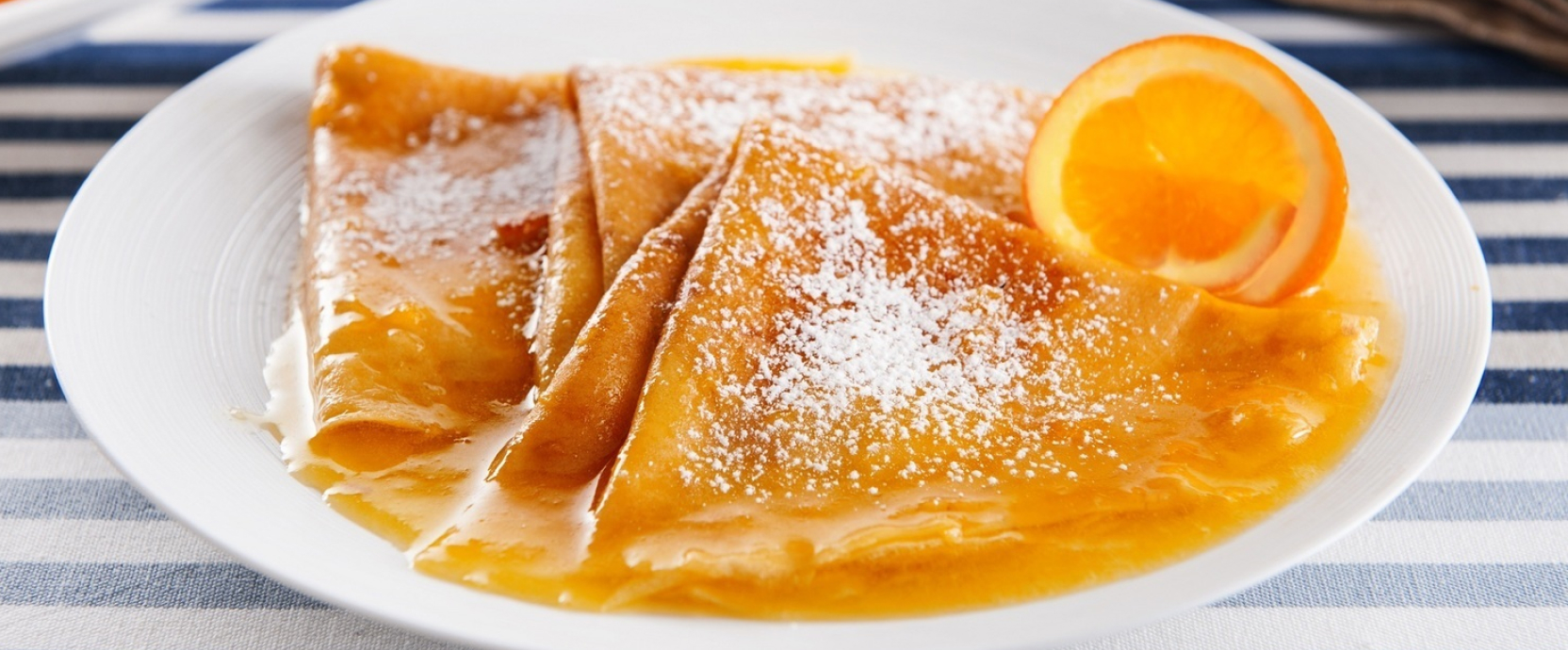On dit que les crêpes Crêpe Suzette Les crêpes (de fines galettes) tirent leur origine d'une erreur commise par un jeune homme travaillant dans les cuisines d'un luxueux restaurant parisien lors d'un dîner aristocratique. Occupé aux fourneaux, il mit accidentellement le feu à des crêpes imbibées de liqueur et nappées d'une sauce caramel à l'orange, persuadé que tout était fichu. Mais en goûtant le plat « gâché », il découvrit qu'il avait acquis une saveur nouvelle et exquise. Ses nobles convives l'apprécièrent également. Ce procédé, appelé flambage, est connu dans de nombreuses cuisines à travers le monde. L'alcool puissant brûle vivement, mais pas suffisamment longtemps pour consumer la crêpe, intensifiant ainsi sa saveur et rendant son arôme et son aspect plus appétissants. Les légendes divergent quant à l'identité de la Suzanne à qui ce dessert doit son nom.
