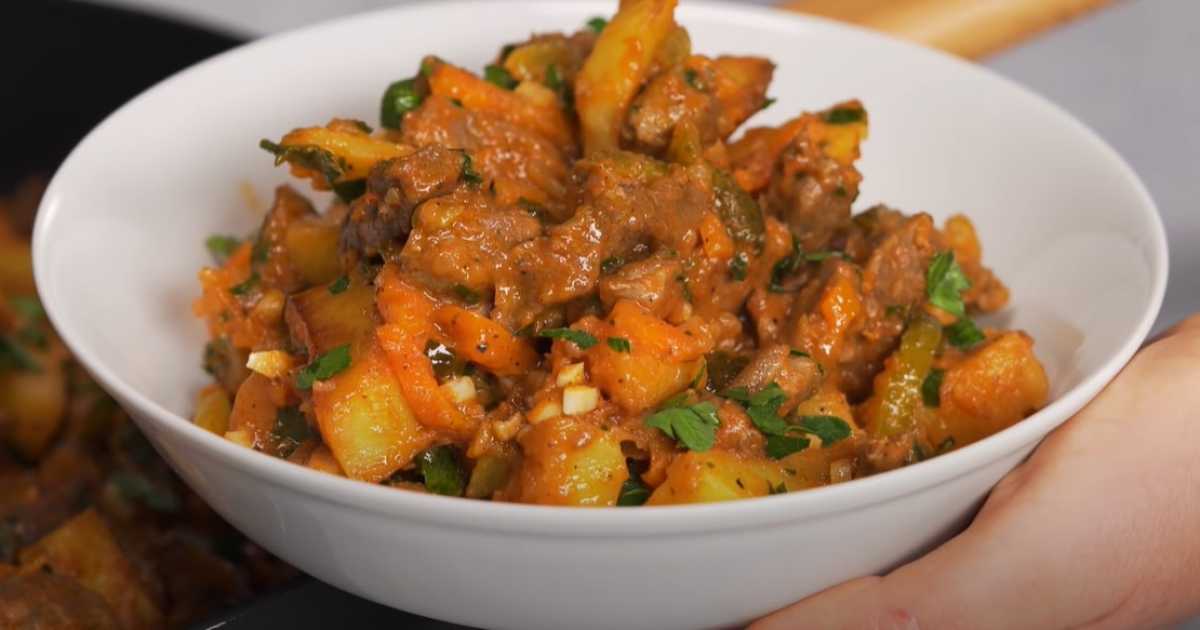 Retirez les feuilles de laurier de la viande et ajoutez les pommes de terre aux autres ingrédients. Couvrez et laissez mijoter 10 minutes à feu doux.