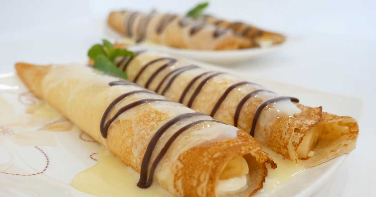 Les crêpes au fromage blanc sont un plat russe classique, ancré dans les traditions paysannes : le fromage blanc était apprécié pour ses qualités nutritives et son prix abordable, et les crêpes étaient servies aussi bien en semaine que les jours fériés. La banane, quant à elle, n'est apparue dans cette recette qu'à la fin du XXe siècle, avec la diffusion des fruits exotiques dans l'alimentation quotidienne. Cette association est rapidement devenue populaire dans la cuisine familiale, notamment pour le petit-déjeuner des enfants ou comme dessert léger. Le fromage blanc apporte des protéines et de la consistance, tandis que la banane confère une douceur naturelle, du moelleux et une saveur vive, permettant ainsi de réduire la quantité de sucre. Aujourd'hui, les crêpes au fromage blanc et à la banane sont un choix de prédilection pour ceux qui recherchent une option maison simple, saine et délicieuse, sans additifs artificiels. Elles sont souvent préparées nature (en ajoutant les ingrédients directement à la pâte) ou fourrées dans des crêpes du commerce, et servies avec du miel, du yaourt ou des fruits rouges frais.
