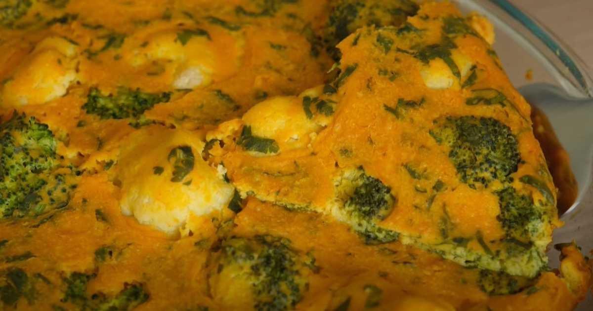 Recouvrez les légumes de la pâte à base de pois chiches et de tofu et faites cuire au four préchauffé à 180 degrés pendant 30 minutes.