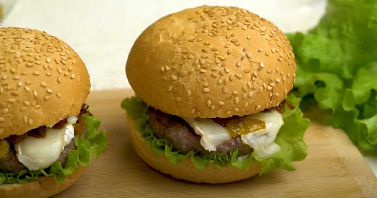 Burgers de veau avec confiture d'oignons et camembert