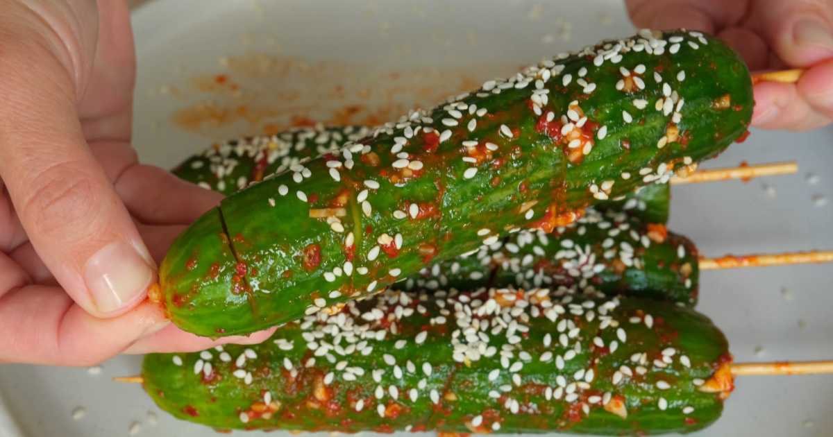 Kimchi de concombre express sur brochettes