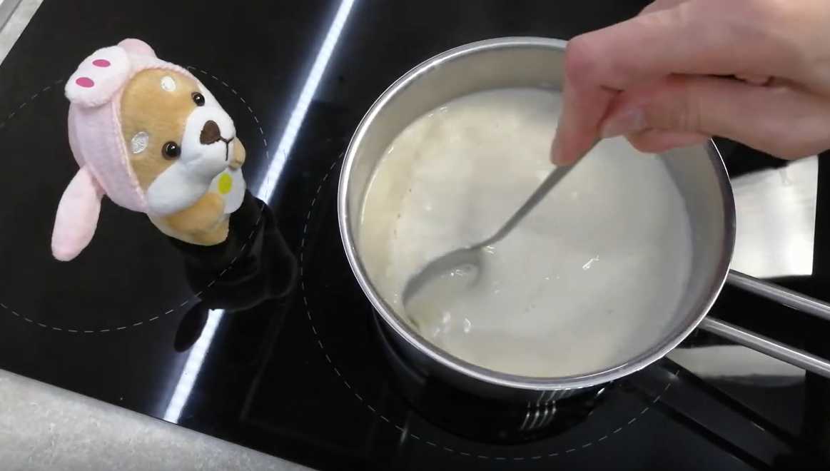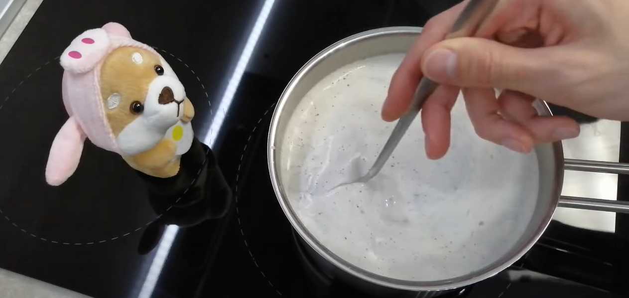 Versez le lait et remuez jusqu'à ébullition du thé.