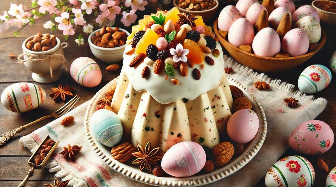 Participez à une tradition ancestrale : servez une délicieuse et magnifique paskha à base de fromage blanc, de fruits confits et de raisins secs sur votre table de Pâques.