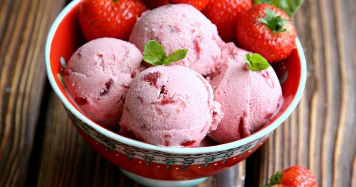 Déposez la glace dans un bol ou un ramequin, garnissez de fraises si vous le souhaitez et servez.