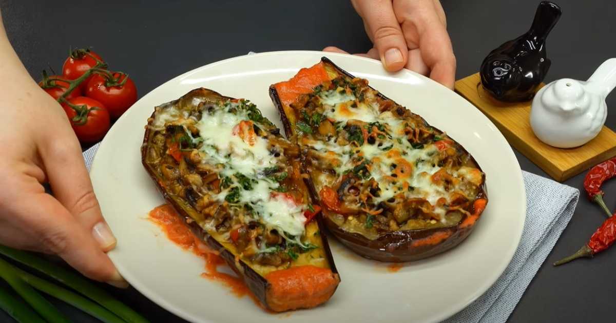 Ajoutez une portion de champignons et de légumes mijotés à chaque aubergine.