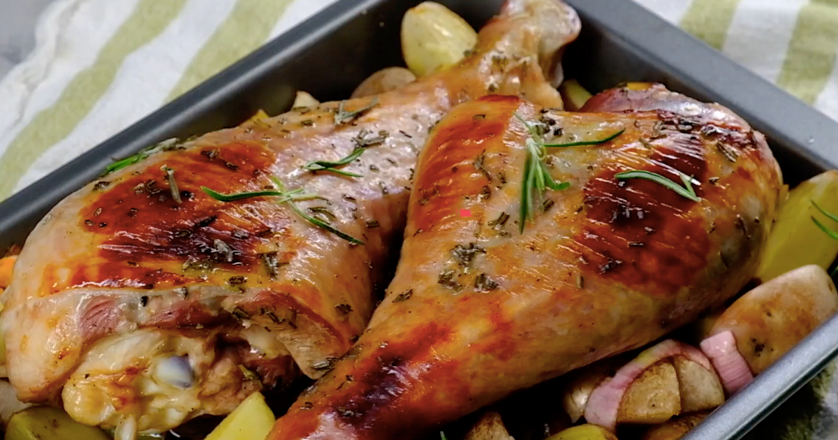 Cette recette de pilons de dinde rôtis au four avec des pommes de terre marinées au miel, au vinaigre balsamique et au romarin illustre la fusion culinaire moderne, alliant les traditions de différentes cuisines aux tendances gastronomiques actuelles. La dinde est une viande nutritive et hypoallergénique, pauvre en matières grasses. Les cuisses de dinde sont particulièrement appréciées : plus tendres et plus savoureuses que les blancs, elles sont marinées et cuites au four pour un résultat exceptionnel.