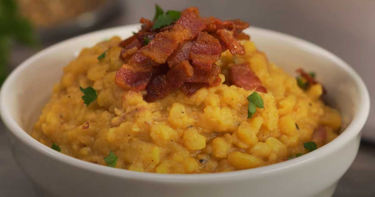 Essayez ce porridge de pois aromatique aux lardons et aux oignons : un plat copieux et savoureux, idéal pour un repas en famille. La recette utilise des viandes fumées et une onctueuse purée de pois, ce qui lui confère une saveur riche et un arôme irrésistible. Simple et facile à suivre, cette recette est parfaite pour préparer un bon repas, même en semaine !