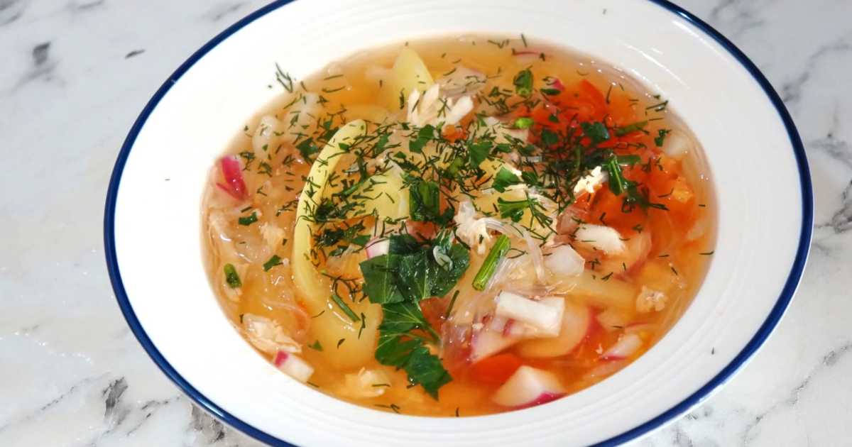Ajoutez les vermicelles de riz, portez la soupe à ébullition à feu doux et retirez-la du feu.