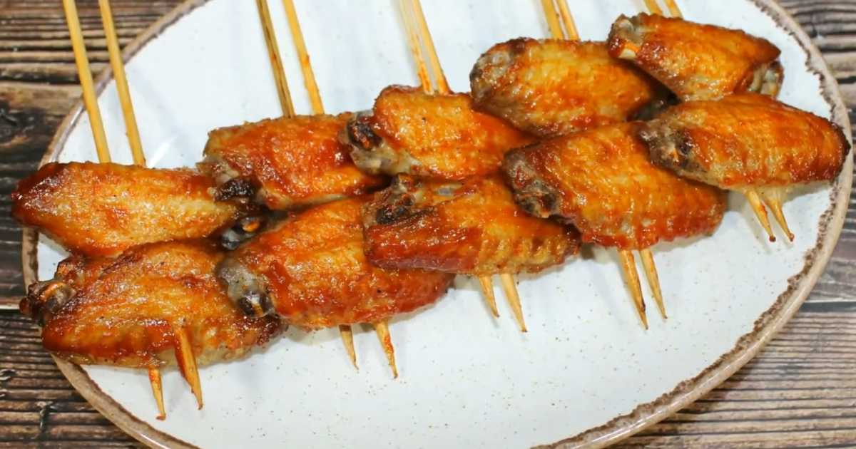 Faites chauffer une bonne couche d'huile végétale dans une casserole. Une fois l'huile à 190 degrés Celsius, placez-y les ailes sur des brochettes.