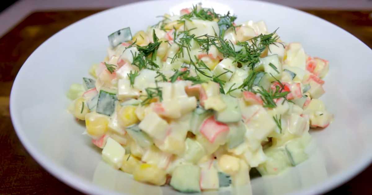 Mélangez notre salade de crabe sans riz avec du concombre et servez. Bon appétit !