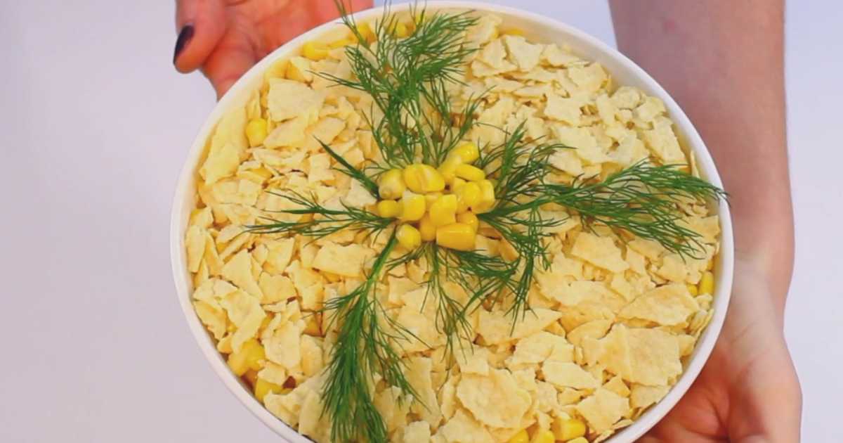 Prenez 50 g de chips. Émiettez-les à la main. Répartissez-les sur le maïs. Cela donnera au plat une texture croustillante.