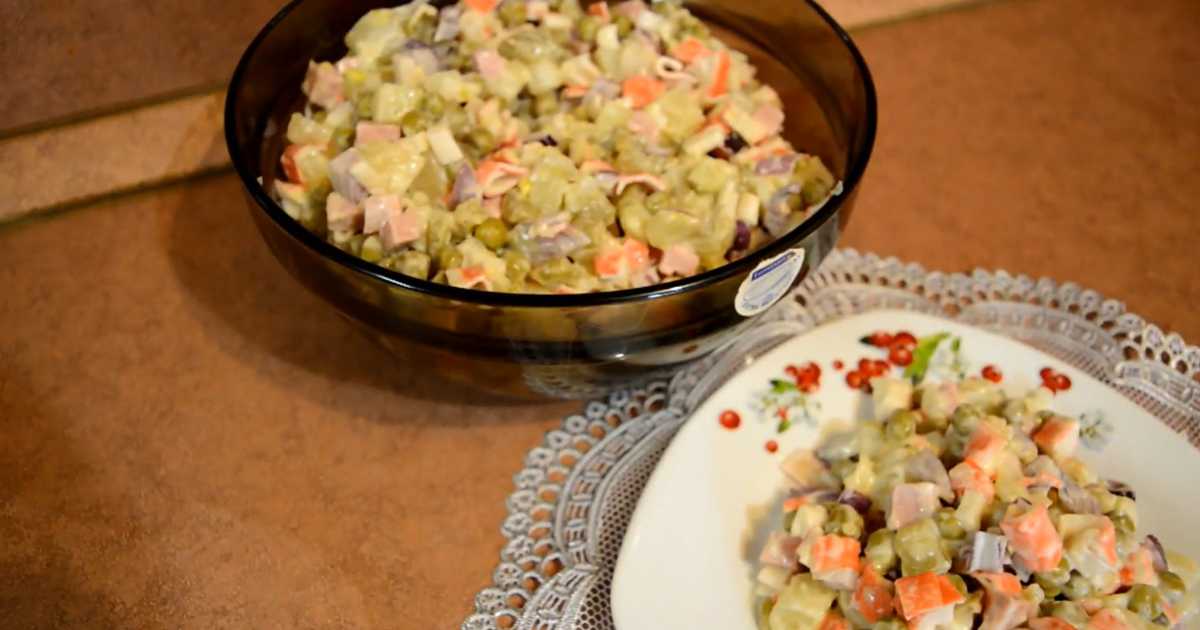 Pour rehausser la saveur : ajoutez une pincée de poivre noir ou un filet de jus de citron avant de mélanger les ingrédients. Cela apportera une légère acidité et rafraîchira la salade. L’erreur principale est d’utiliser trop de mayonnaise. Incorporez-la progressivement pour éviter que la salade ne soit trop liquide. Vous pouvez remplacer certains ingrédients : si vous n’avez pas de jambon, remplacez-le par du blanc de poulet cuit, coupé en petits dés. Le maïs en conserve convient parfaitement à la place des petits pois. Pour une version végétarienne, il suffit d’omettre le jambon.