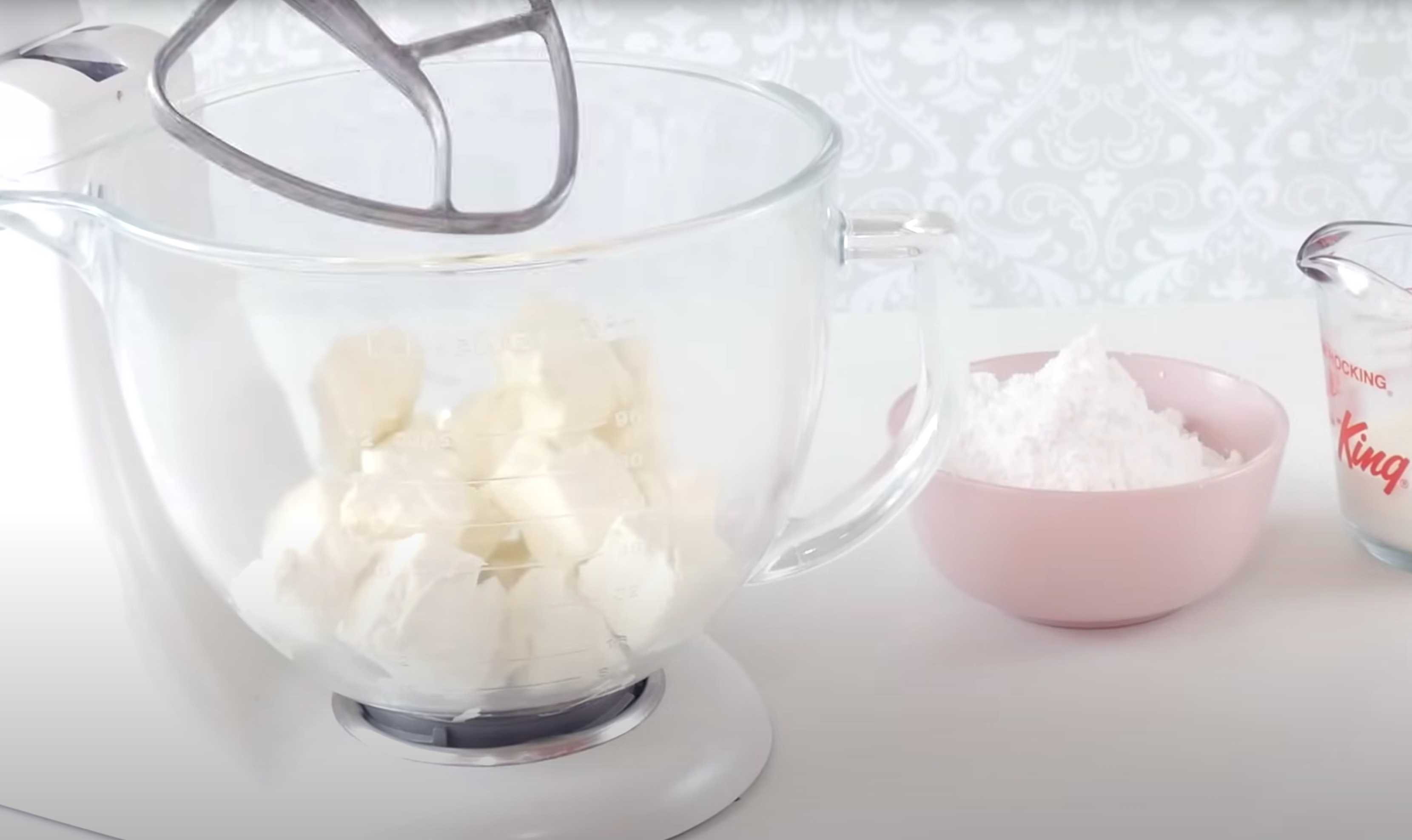 Battre le fromage à la crème froid au batteur électrique.