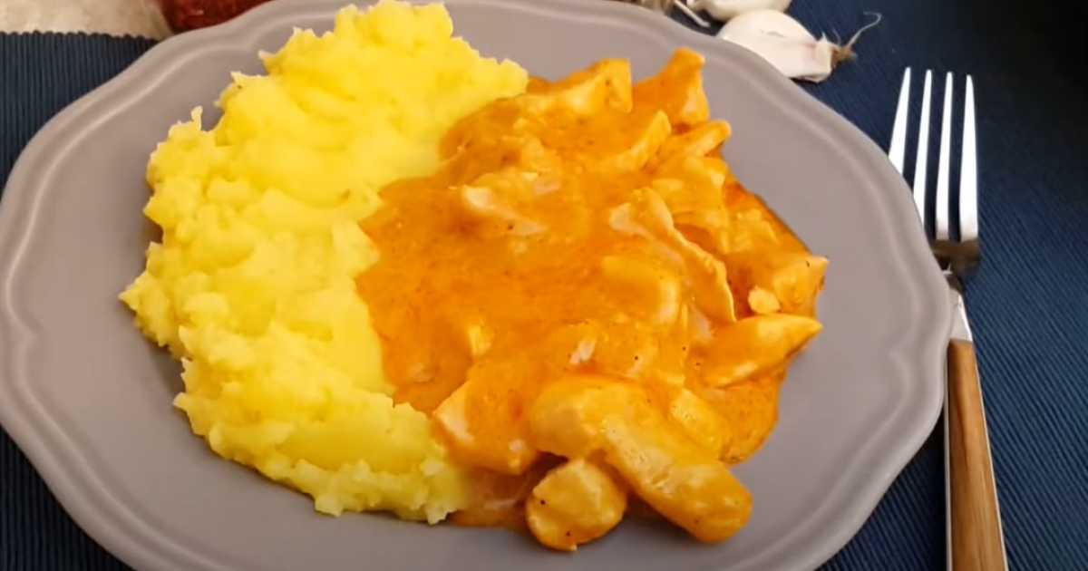 Coupez le filet de poulet en petits morceaux et ajoutez-le à l'oignon. Mélangez.