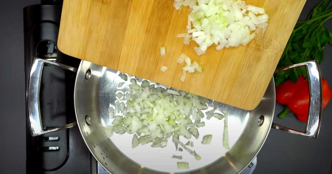 Versez de l'huile végétale dans une poêle profonde et faites revenir légèrement l'oignon jusqu'à ce qu'il soit tendre.