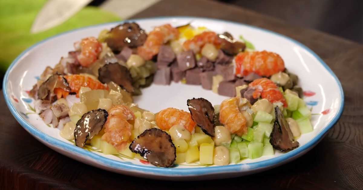 Cette salade raffinée et onéreuse est un véritable délice pour les fêtes. La combinaison de saveurs est si riche qu'on a hâte de goûter à ce chef-d'œuvre.