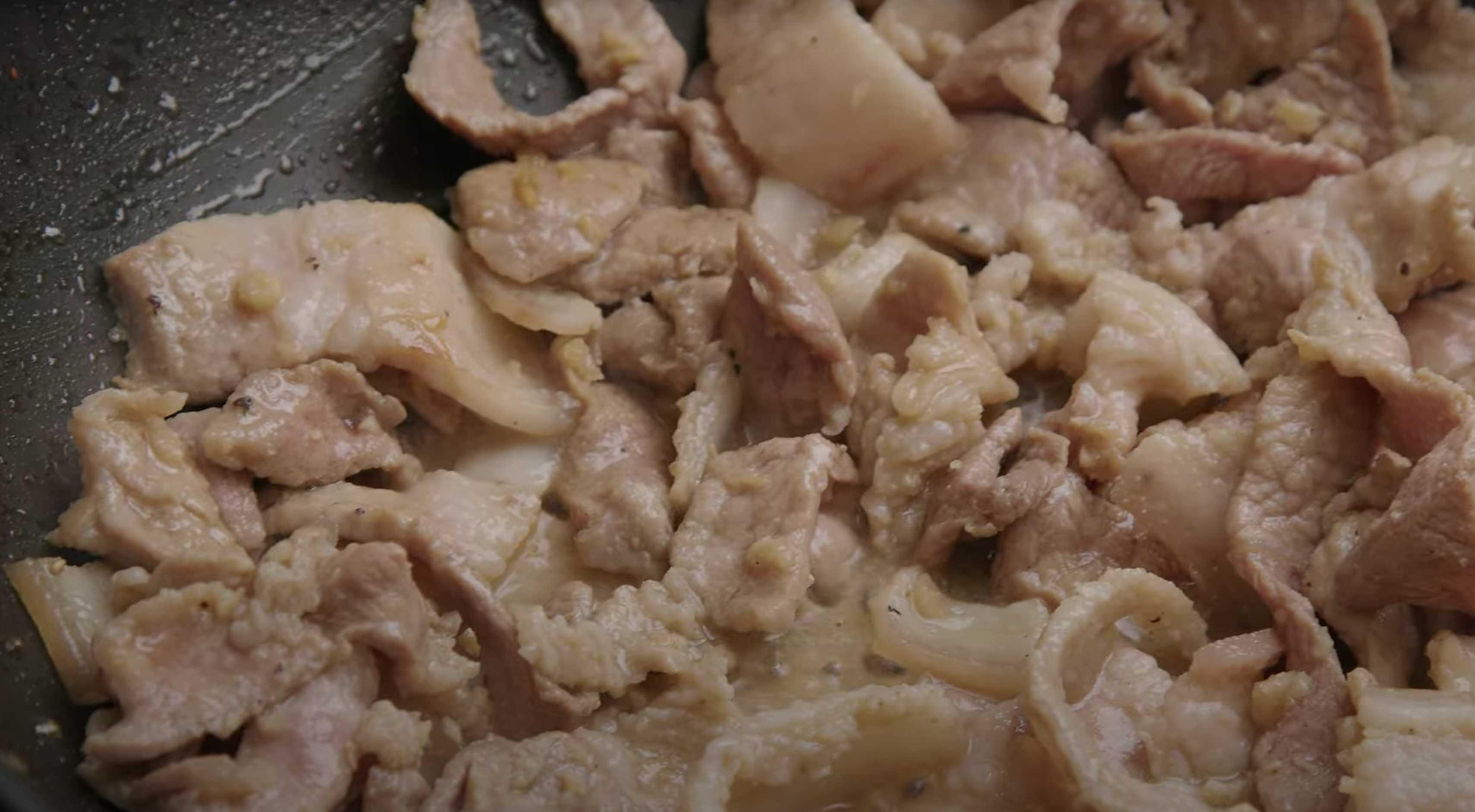 Faites chauffer une poêle profonde ou un wok à feu moyen, ajoutez un peu d'huile végétale, ajoutez la viande et faites-la frire jusqu'à ce qu'elle soit presque cuite.