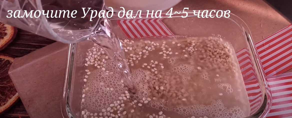 Placez les haricots mungo pelés (urad dal) dans un bol propre et laissez-les tremper pendant 4 à 5 heures.