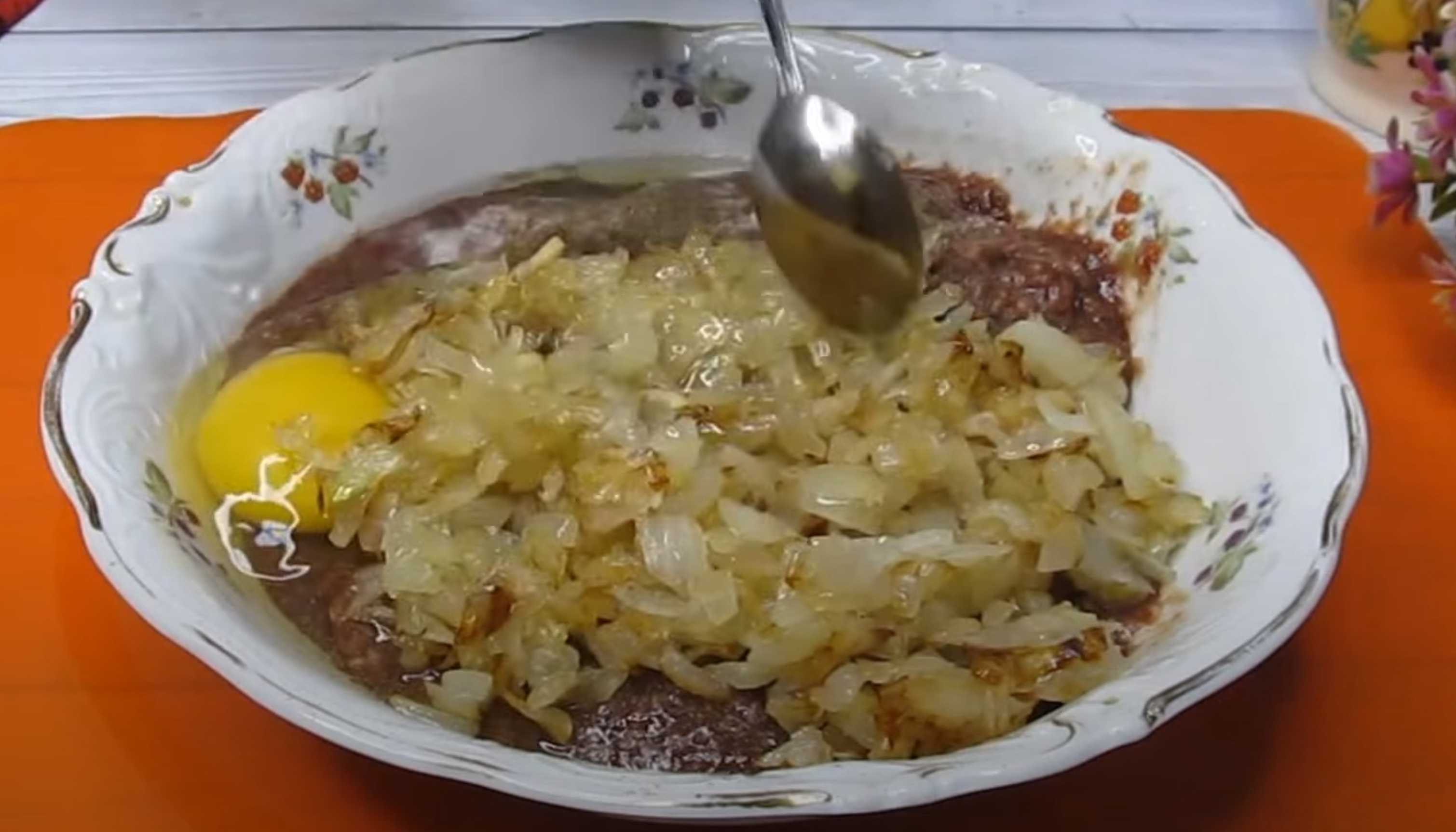 Salez et poivrez la viande hachée, ajoutez l'œuf, l'oignon frit et le bicarbonate de soude.