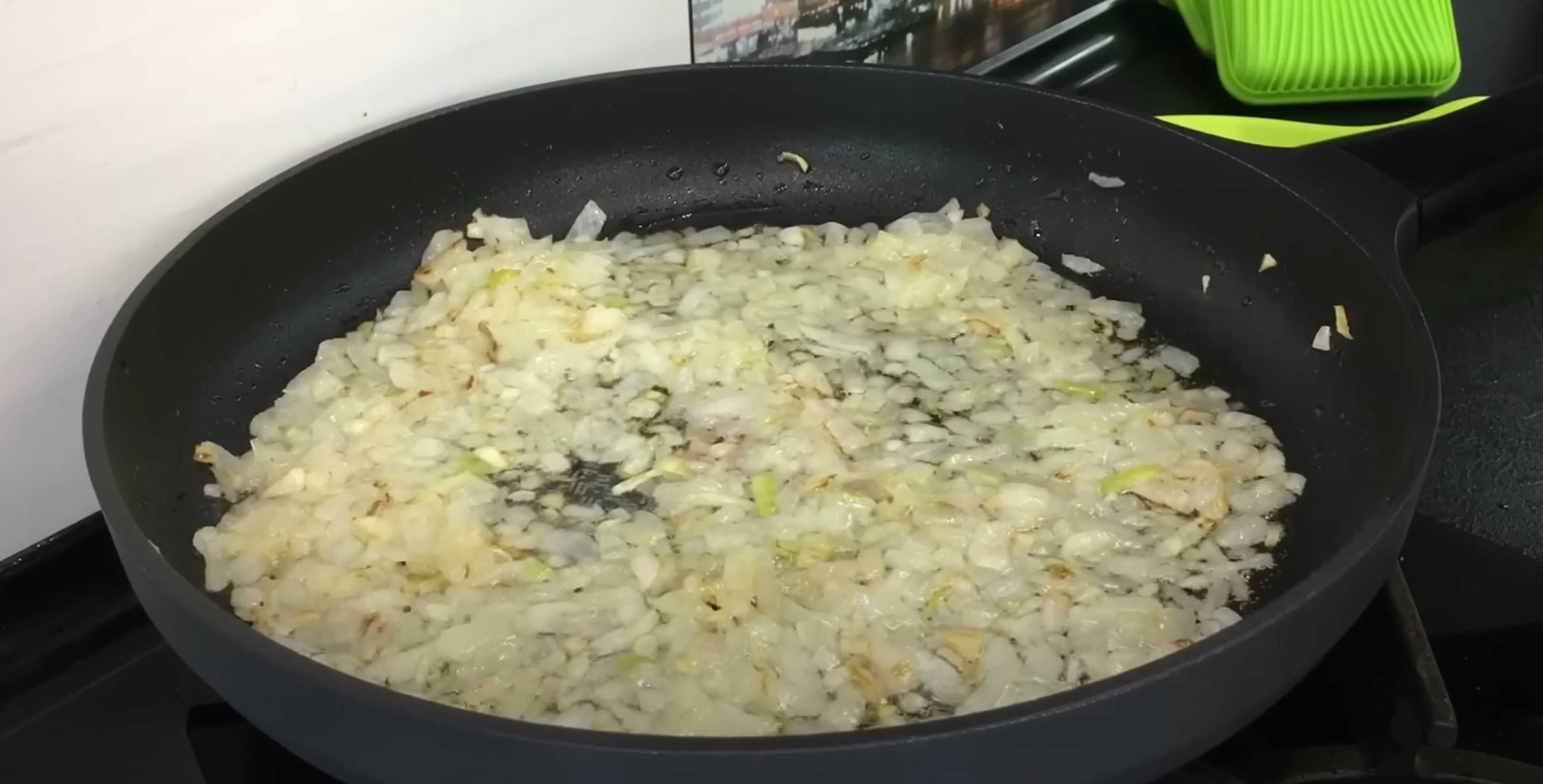 Hachez finement l'oignon et faites-le revenir dans une poêle avec de l'huile végétale jusqu'à ce qu'il soit doré.