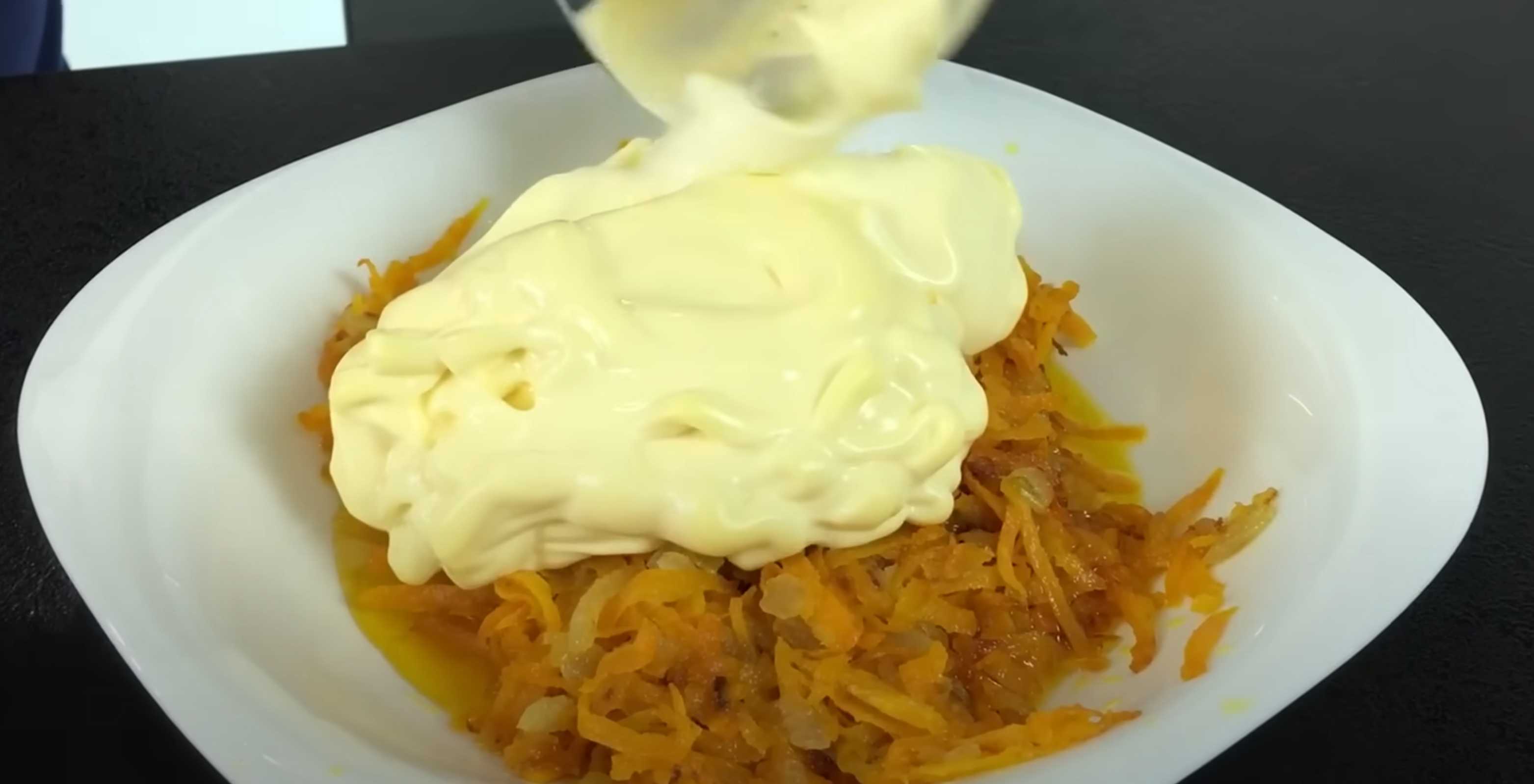 Mélanger les légumes frits avec de la mayonnaise.