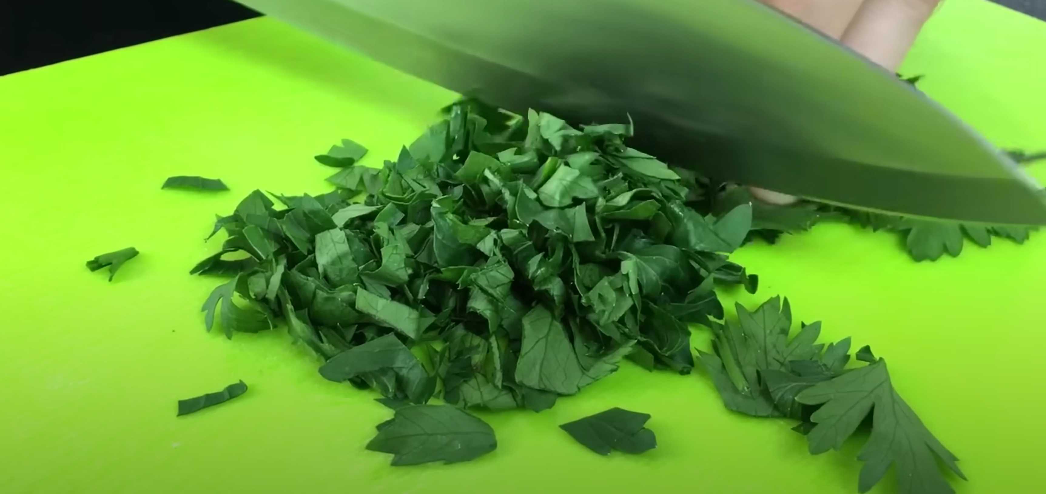 Hachez le persil, étalez la dernière couche de mayonnaise et parsemez de persil.