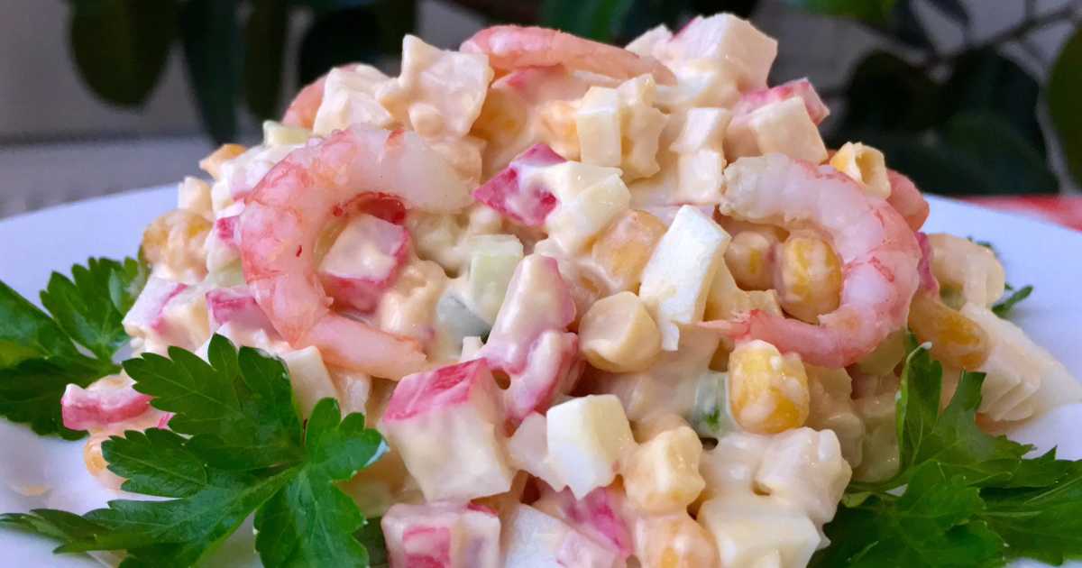Salade festive avec bâtonnets de crabe, crevettes et maïs