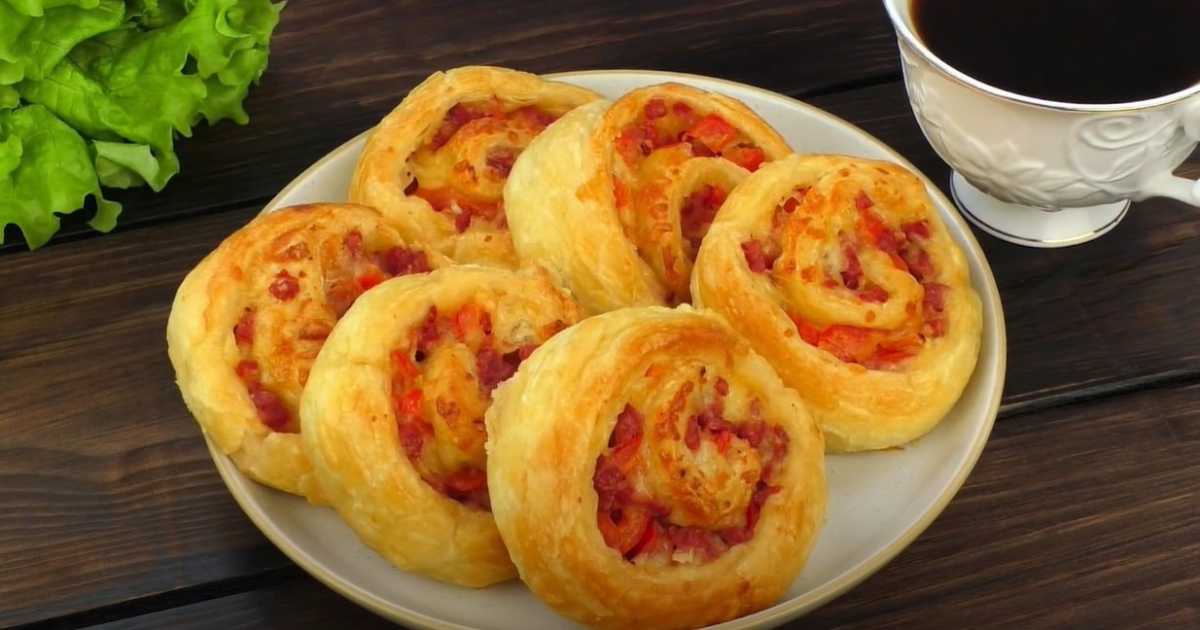 Pâte feuilletée fourrée à la saucisse et au fromage