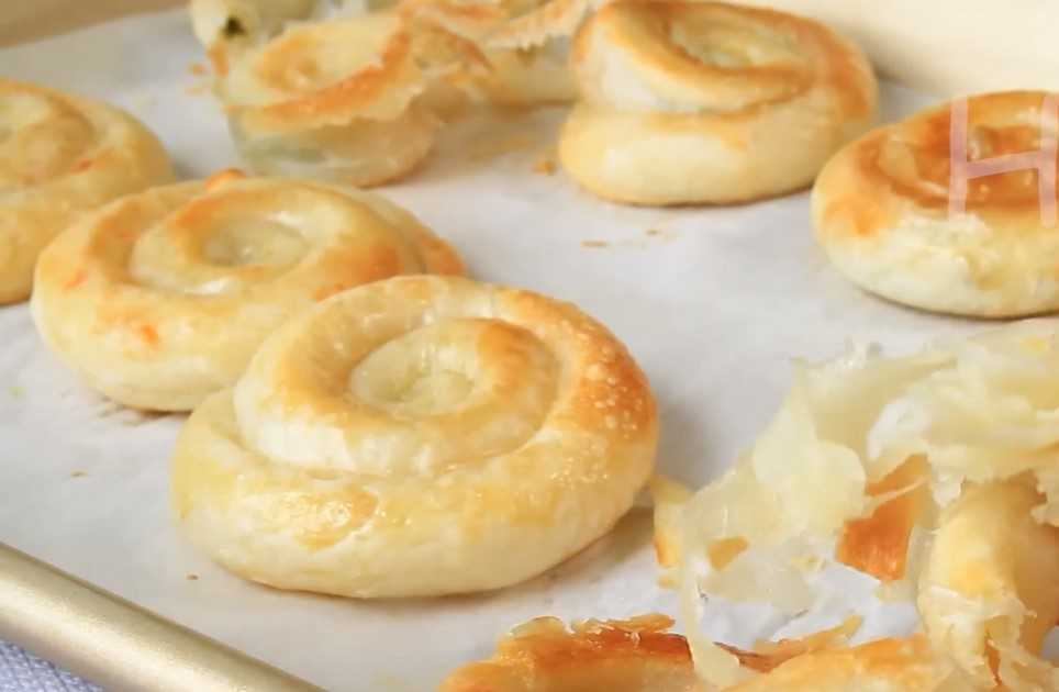 Ces escargots de pâte sans levain, fourrés d'oignons verts et de fromage, rappellent les crêpes chinoises classiques aux oignons verts (Kong-yu-bing). La différence réside dans le fait qu'en Chine, la garniture est généralement roulée en forme d'escargot puis étalée à nouveau pour former une crêpe plate. Les crêpes escargot peuvent être garnies d'autres ingrédients que des oignons. Elles peuvent également être cuites de deux manières différentes.