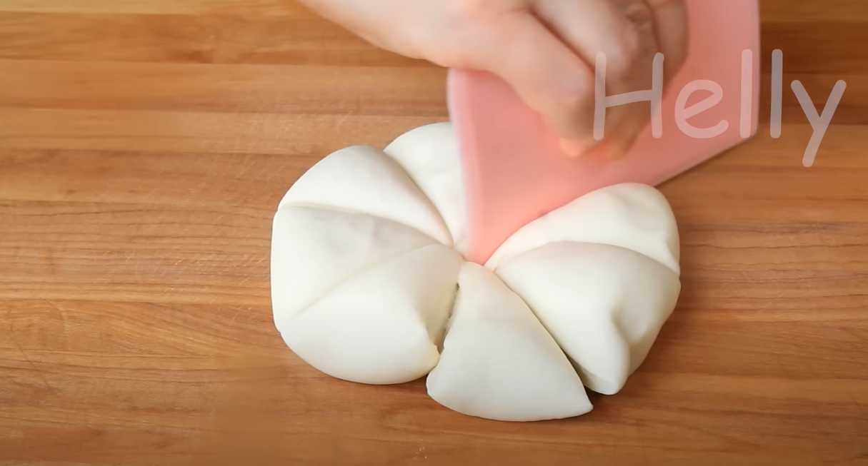 Transférez la pâte sur une planche et divisez-la en 8 morceaux.