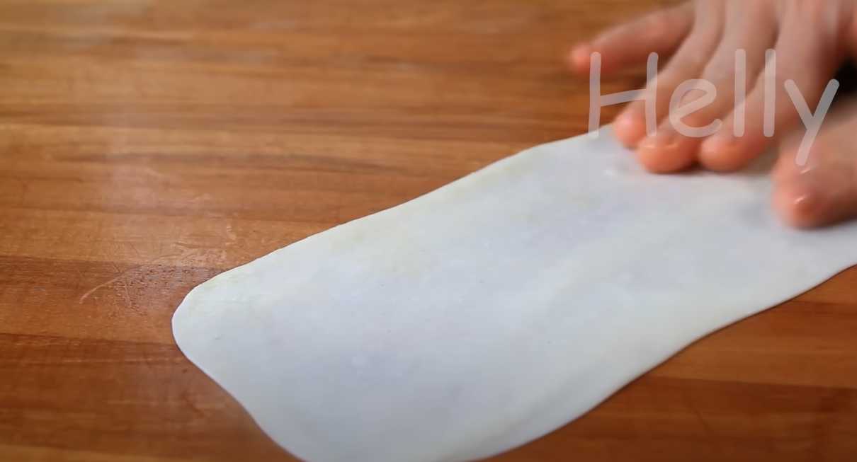 La méthode pour étirer les rouleaux de pâte farcis est similaire à celle utilisée pour la fabrication des nouilles chinoises traditionnelles : saisissez les extrémités de la pâte à deux mains et frappez fermement le milieu contre la table, en écartant progressivement les mains. Veillez simplement à ne pas déchirer le rouleau.