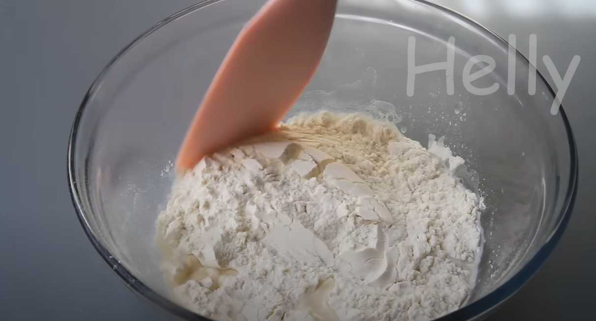 Versez 150 grammes de farine dans l'eau et mélangez bien jusqu'à ce qu'une pâte se forme sous forme de flocons.
