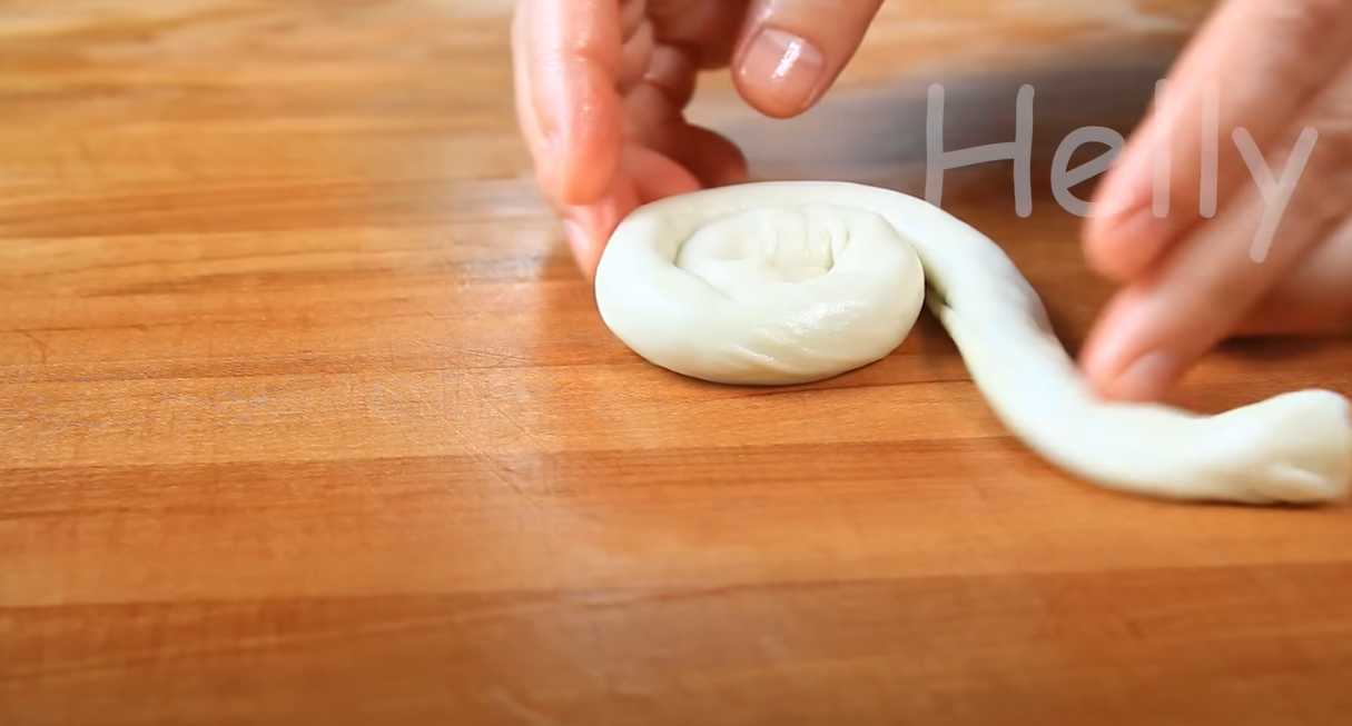 Étirez le tube obtenu en le tapant sur la table, aplatissez les extrémités et enroulez-le en forme d'escargot.