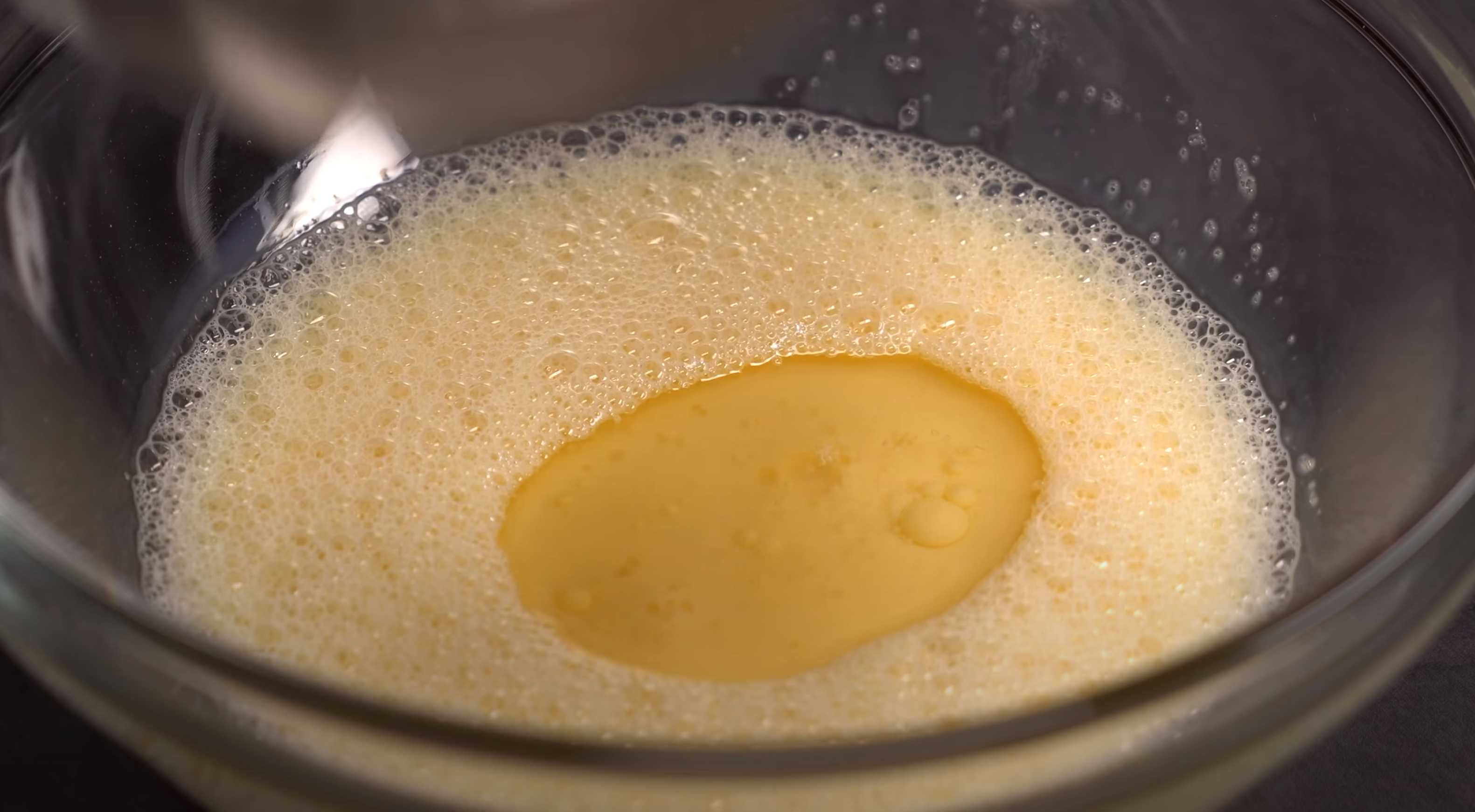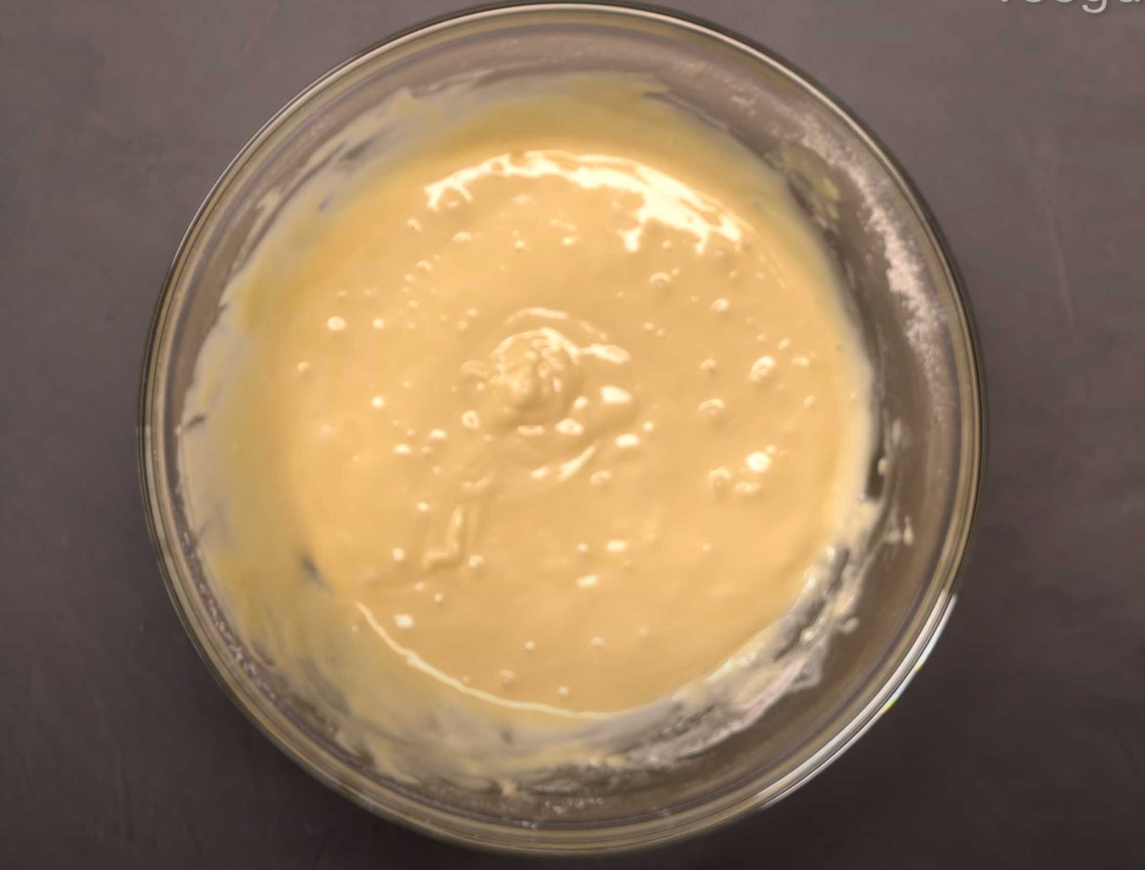Ajoutez la farine tamisée, la levure chimique et la vanille à l'œuf et battez au fouet, ajoutez 1 cuillère à café de vinaigre et mélangez.