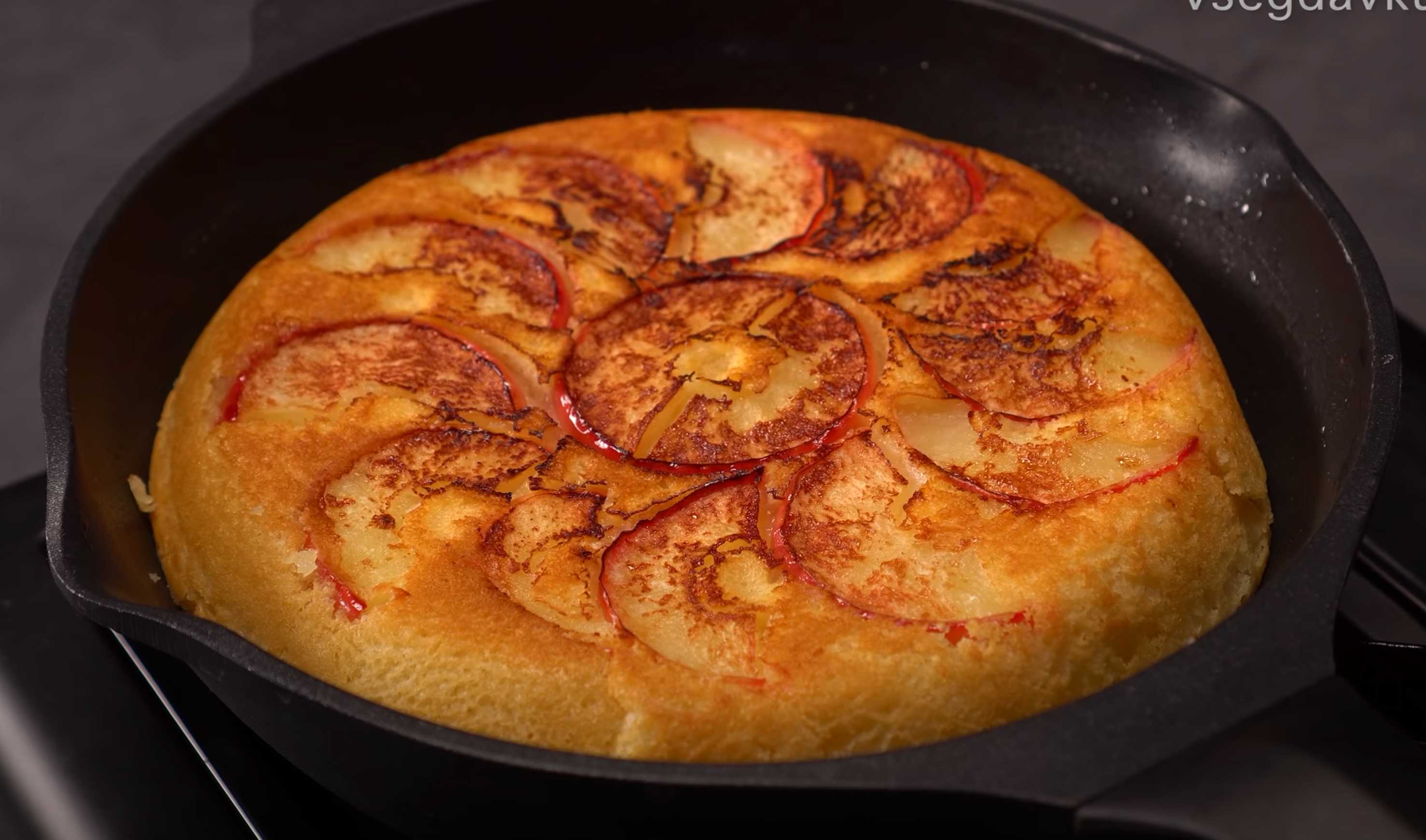 Cette délicieuse tarte aux pommes, légère et savoureuse, cuite à la poêle, est une véritable aubaine quand on n'a ni four, ni micro-ondes, ni mijoteuse (à la datcha, en vacances ou en résidence étudiante). Elle est incroyablement rapide à préparer, moelleuse, fondante et riche en saveurs grâce aux pommes caramélisées. Impossible de la rater, il faut absolument l'essayer !