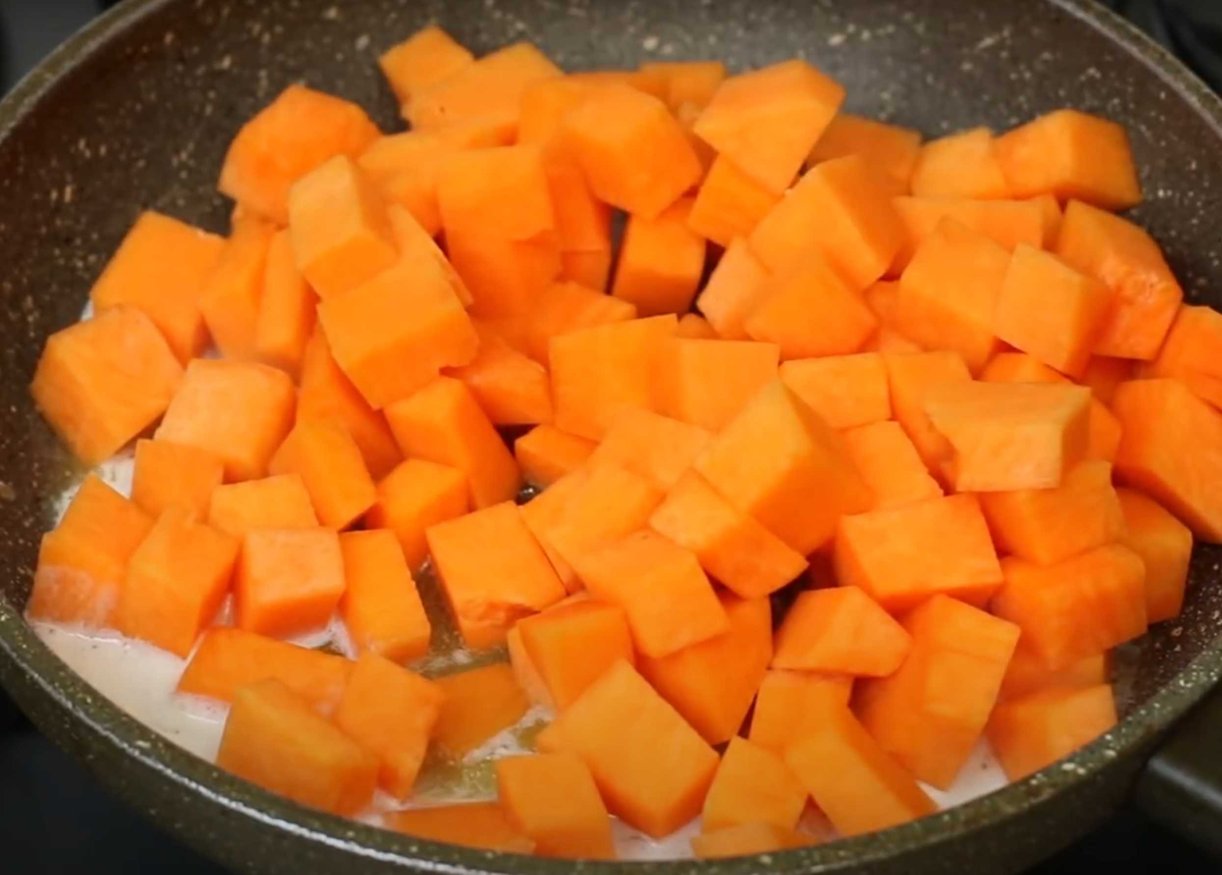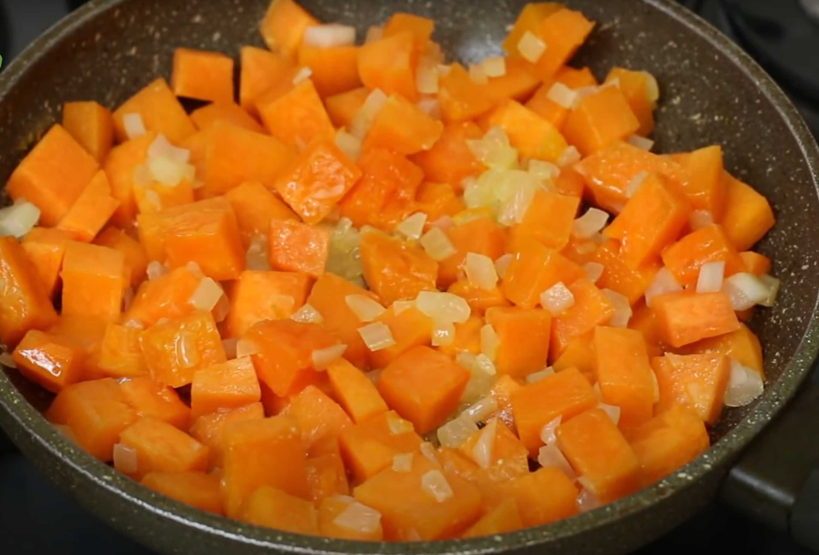 Ajouter la citrouille et l'oignon, remuer et faire revenir pendant 5 minutes.