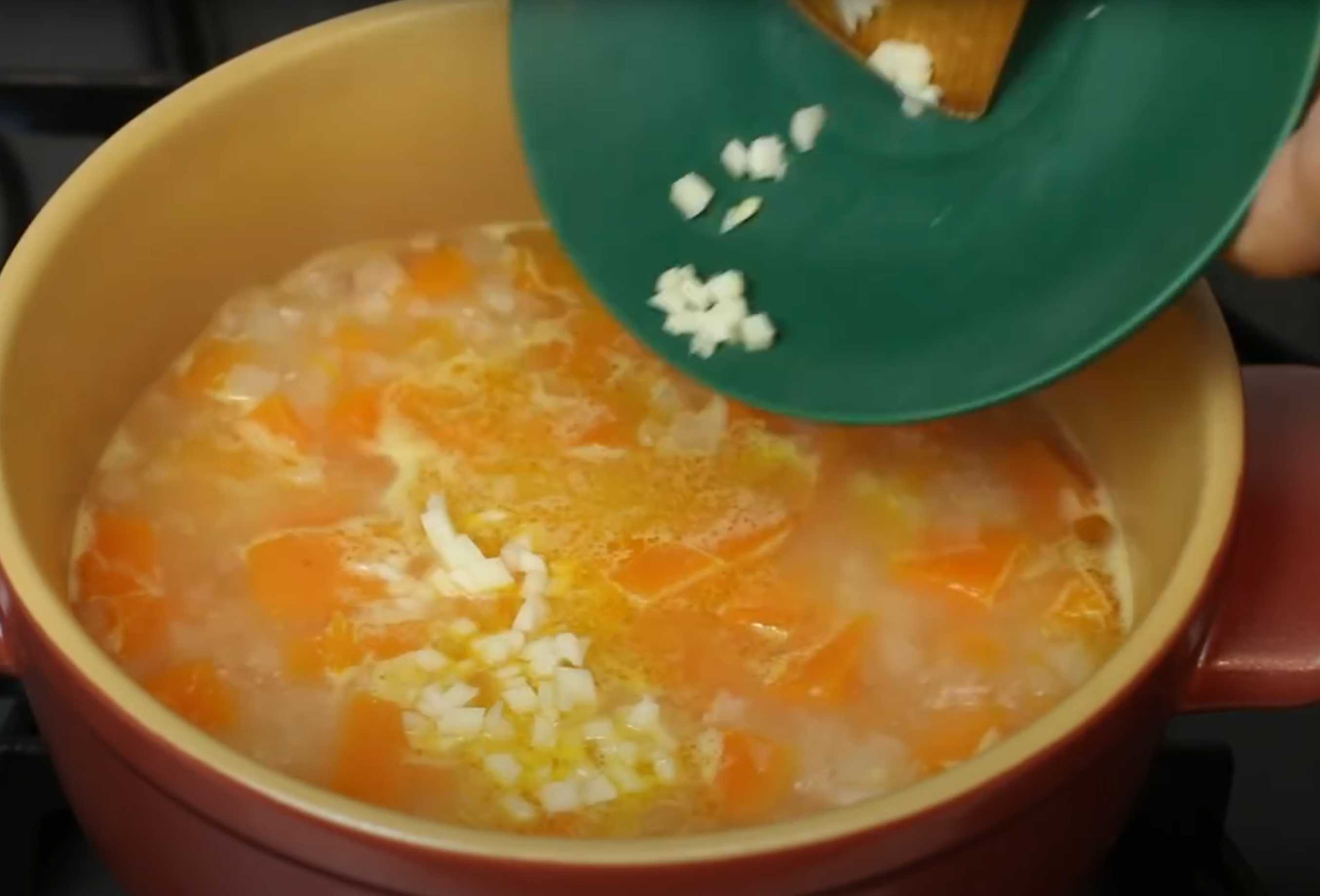Écrasez une gousse d'ail et ajoutez-la à la soupe.