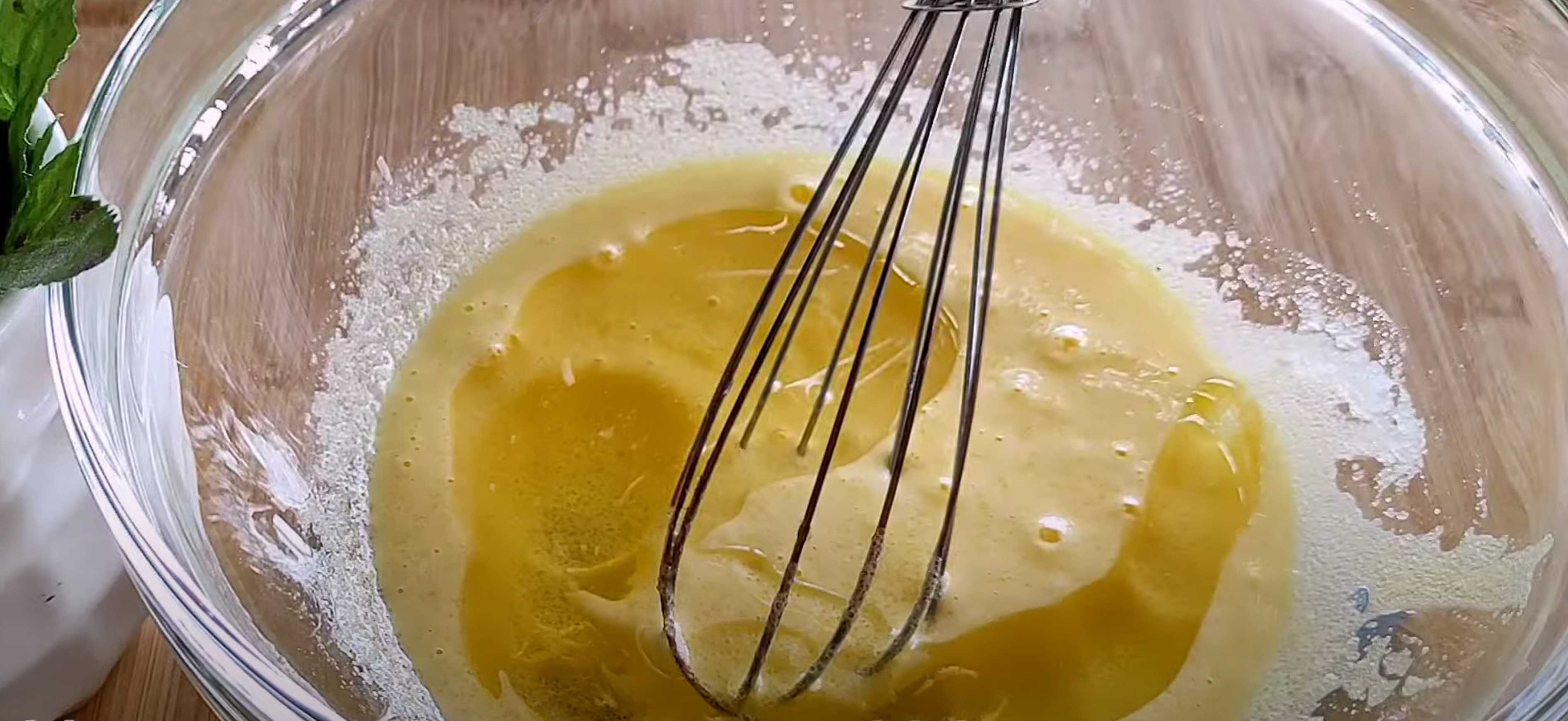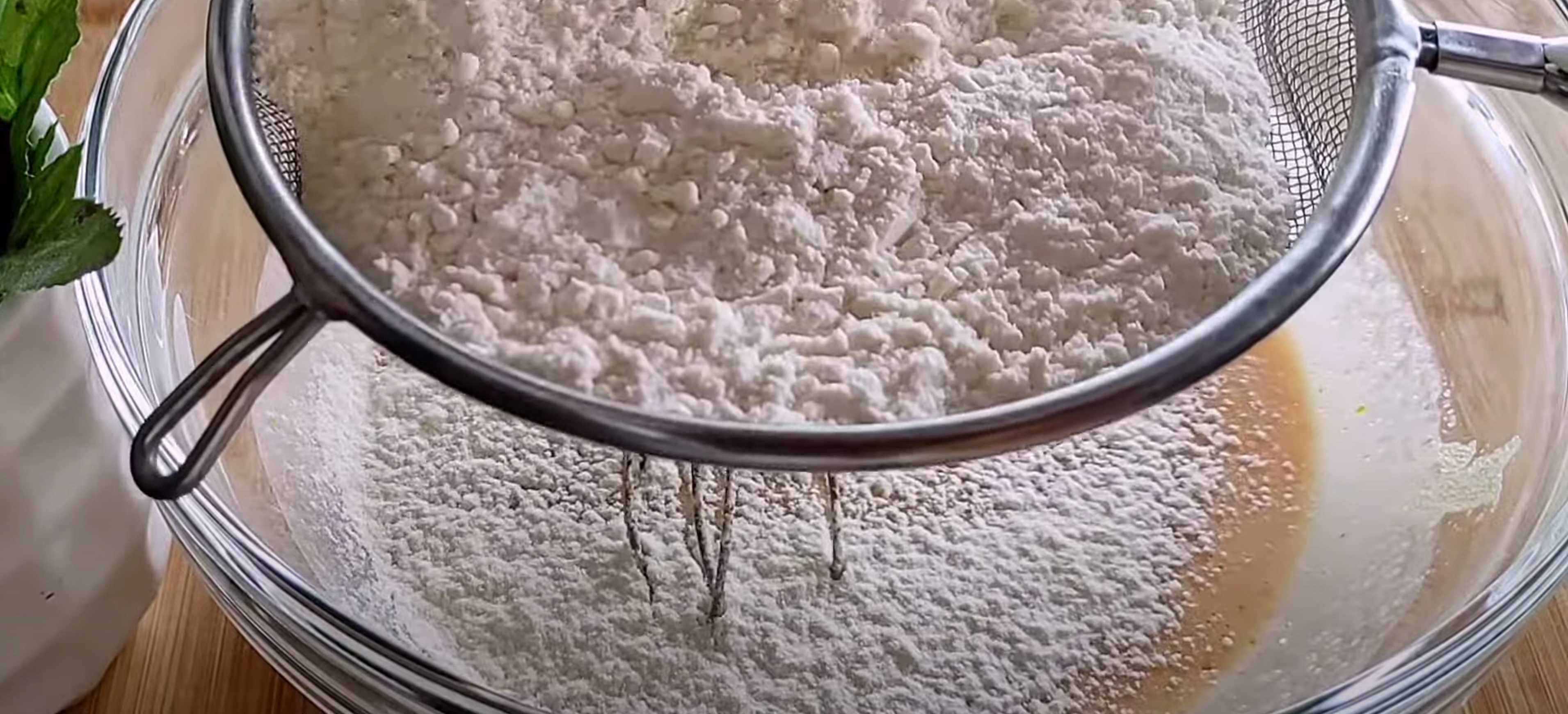 Tamisez la farine et la levure chimique. Mélangez soigneusement au fouet.