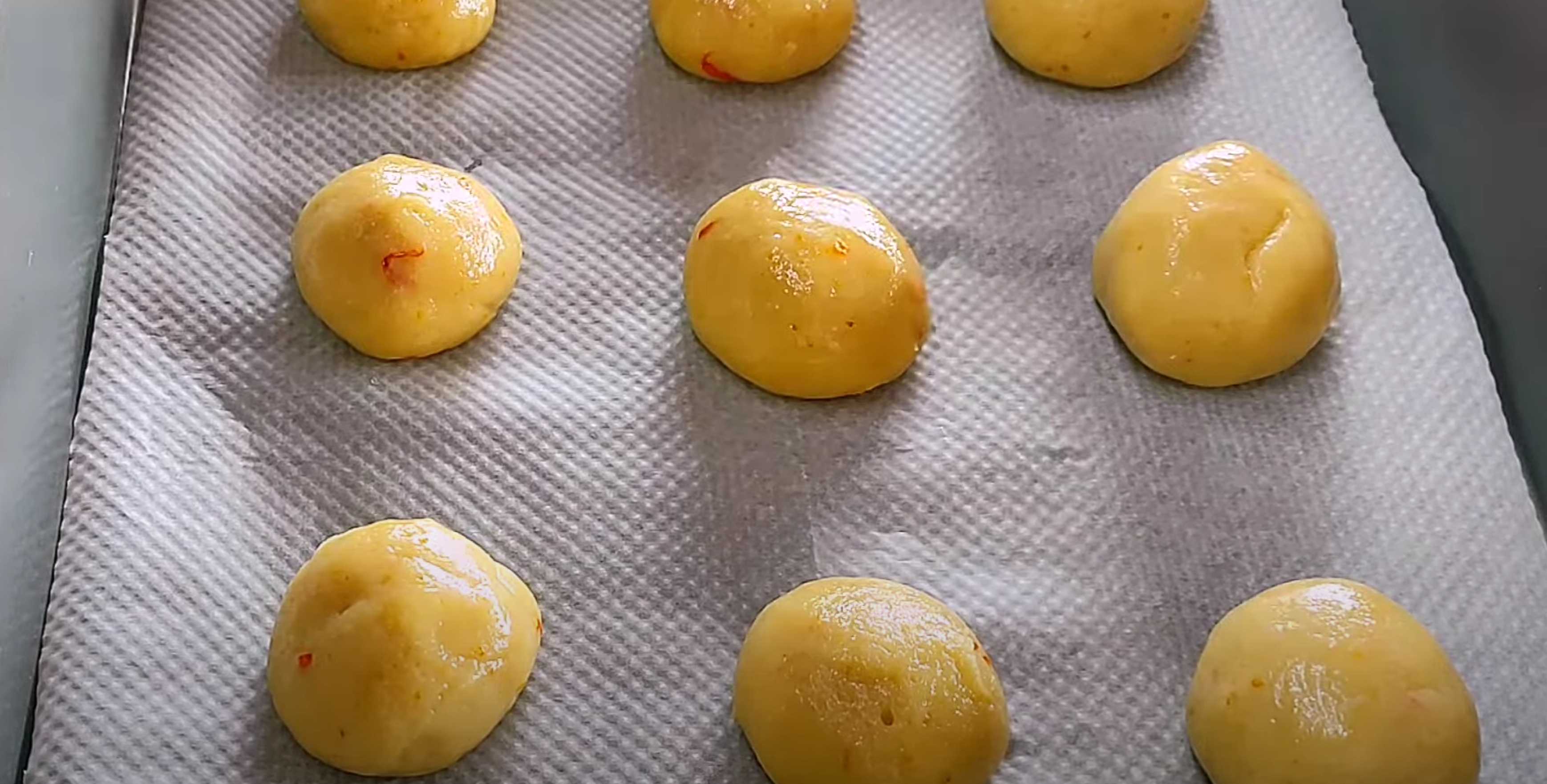 Former des boules de pâte et les déposer sur une plaque de cuisson recouverte de papier sulfurisé.