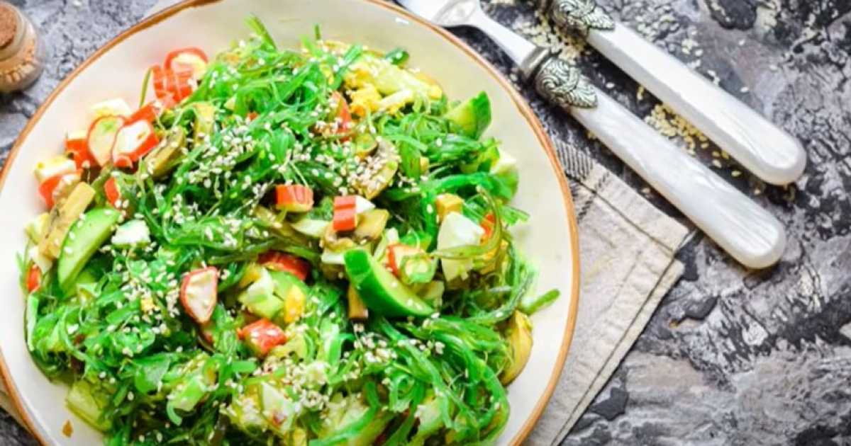 Salade avec chuka et bâtonnets de crabe