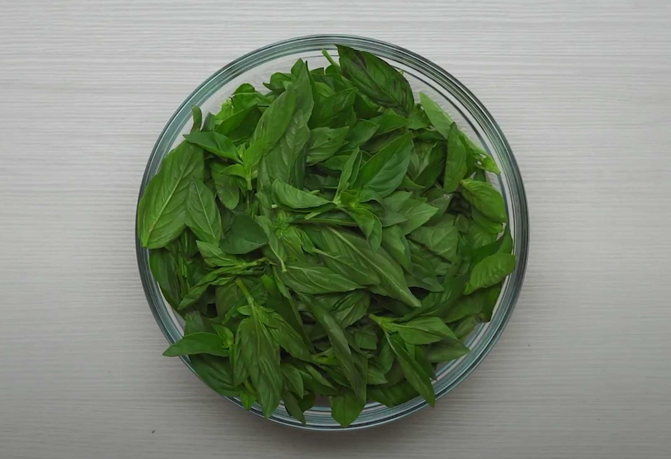Détachez les feuilles de basilic des branches et placez-les dans un bol.