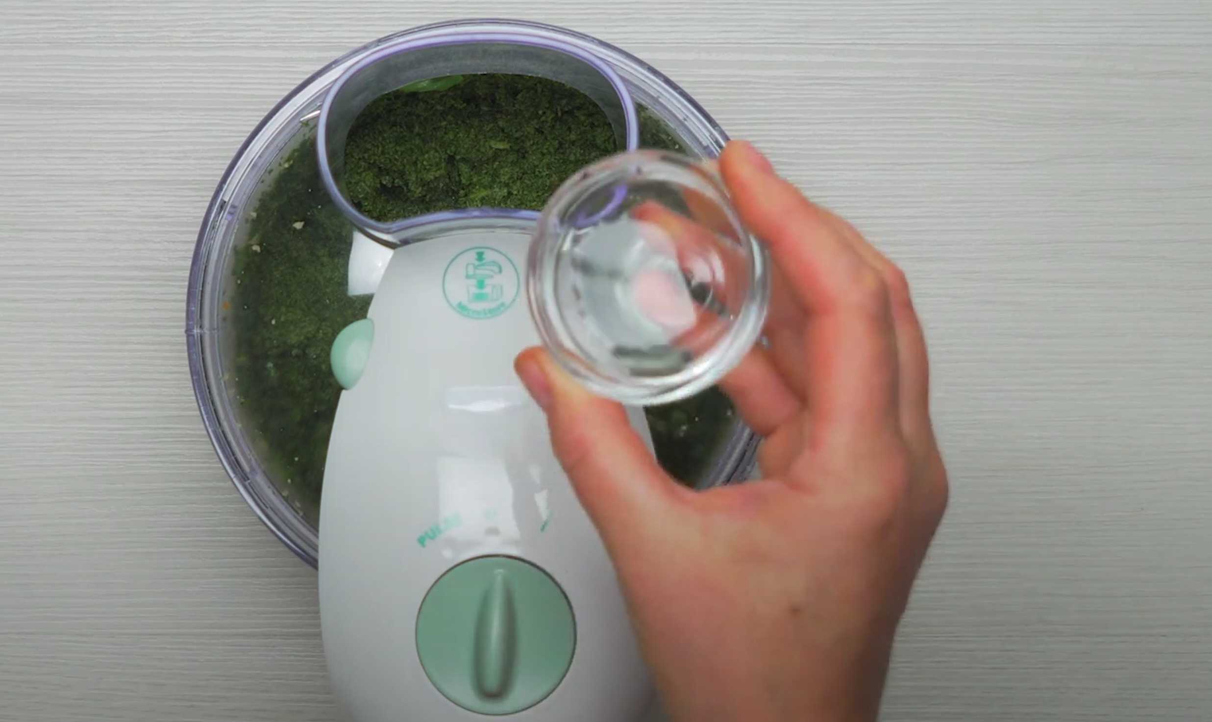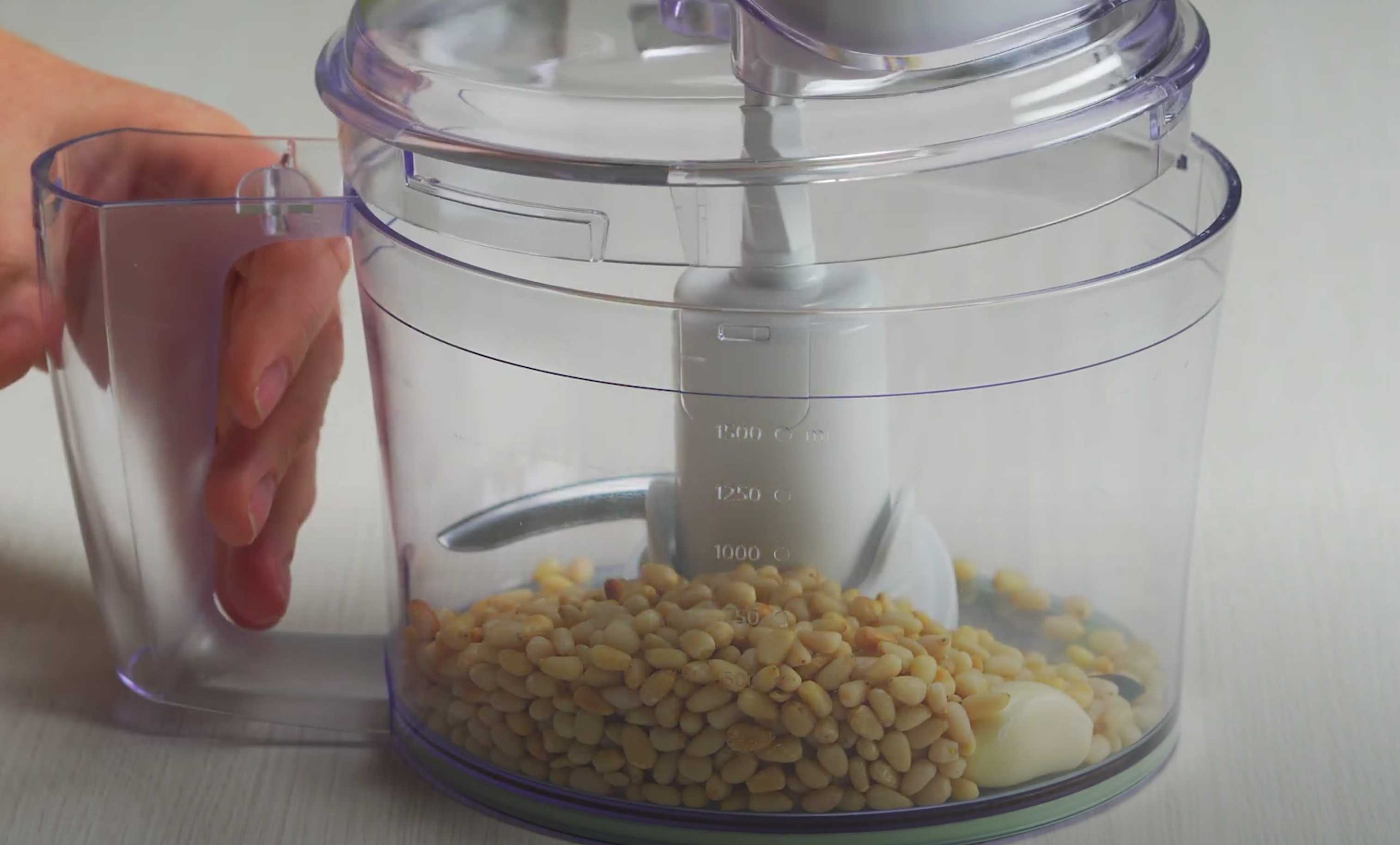 Mettez l'ail et les pignons de pin dans un mixeur et mixez pendant 10 secondes jusqu'à obtenir une consistance lisse.