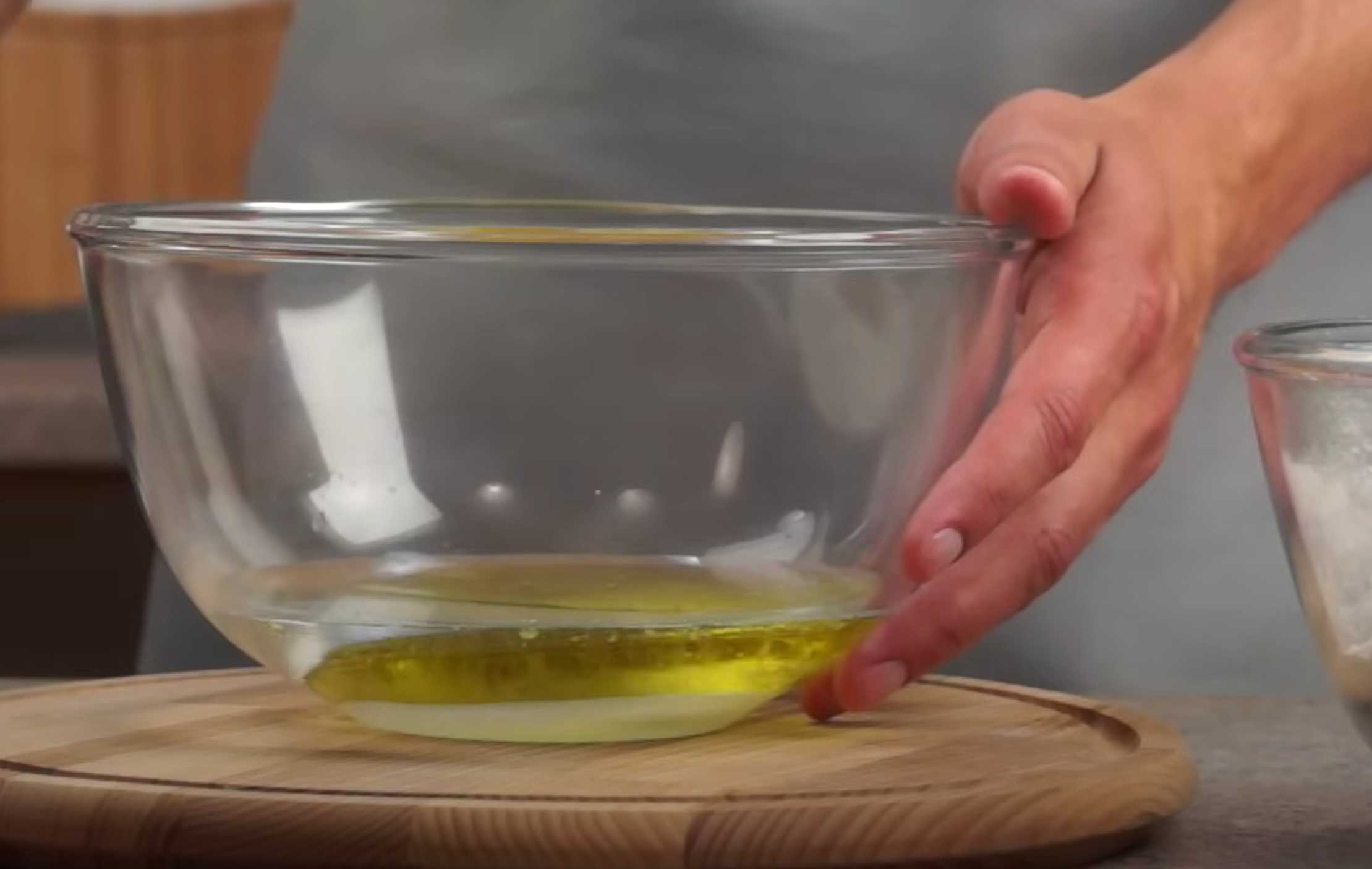 Mettez le sucre et le sel dans un bol propre, ajoutez l'eau et l'huile d'olive. Mélangez.