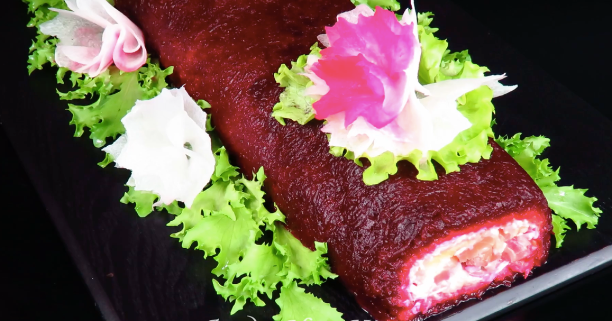 Cette roulade revisite la salade soviétique classique « Hareng sous un manteau de fourrure ». Si la version traditionnelle, avec ses couches colorées de légumes et de poisson, reste inchangée, sa forme roulée lui confère une touche de sophistication et la rend idéale pour un repas de fête. Cette roulade est particulièrement parfaite pour le Nouvel An, où vous souhaitez impressionner vos invités tant par sa saveur que par son originalité.