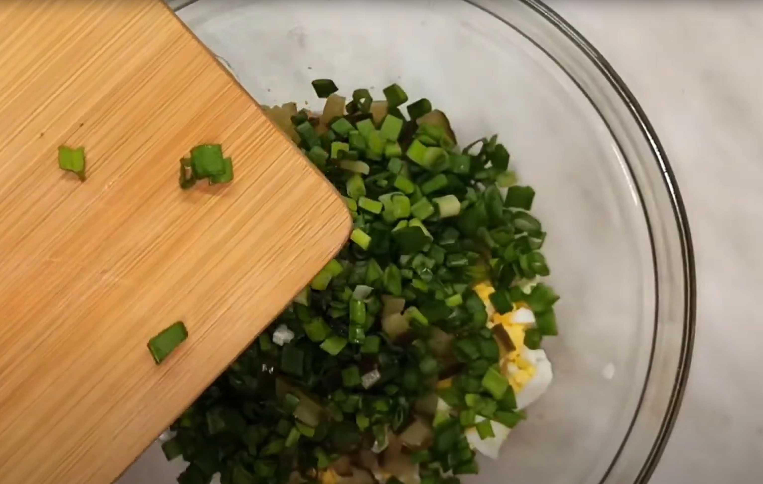 Hachez finement les oignons verts et ajoutez-les dans le bol.