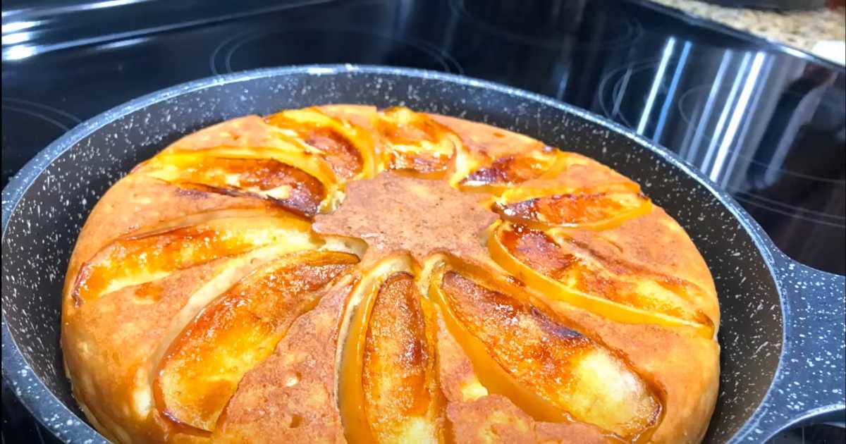 Ajoutez un peu de ghee ou d'huile végétale dans la poêle et remettez la tarte dans la poêle, les pommes vers le haut, et faites cuire sans couvercle pendant 2 à 2,5 minutes.