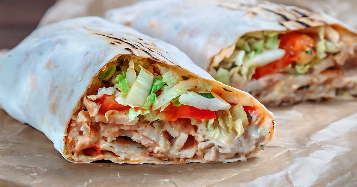 Lavash shawarma au poulet et aux légumes