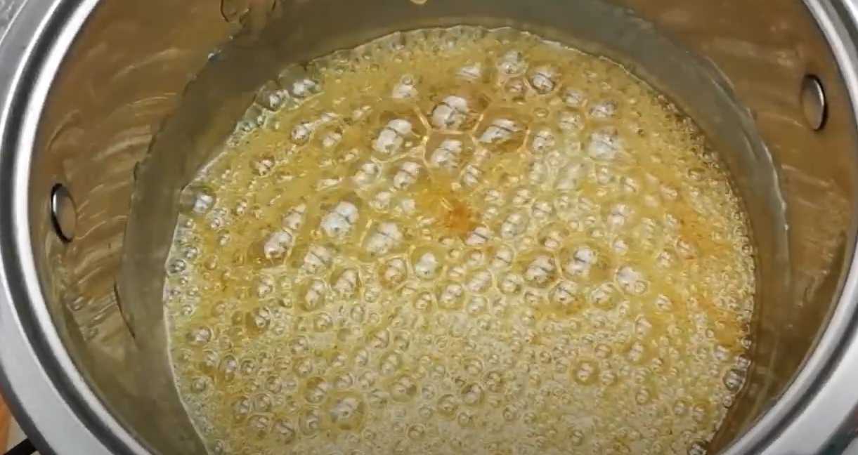Mélanger le sucre, le miel et l'eau dans une casserole. Cuire au four pendant 5 à 6 minutes en remuant constamment.