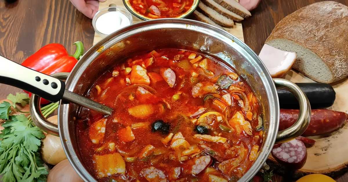 Si vous souhaitez préparer une solianka rapidement, sans passer des heures à faire mijoter un bouillon de viande, cette recette vous ravira. Parmi les nombreuses recettes de soupes, la solianka est à juste titre considérée comme l'une des plus savoureuses et nourrissantes. Nous vous montrerons comment réaliser une soupe riche, généreusement garnie de viandes fumées et dotée d'une acidité piquante, avec seulement 2 litres d'eau.
